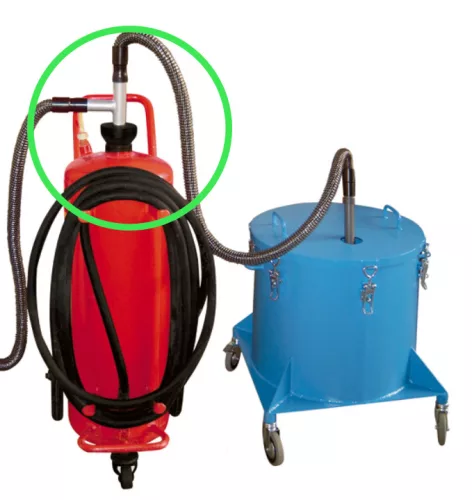 Geeignet zur Wiederbefüllung von fahrbaren Feuerlöschern mit 50 kg, 75 kg, 100 kg und 250 kg Füllgewicht. Das Set enthält einen Pulverschlauch und eine Sauglanze.